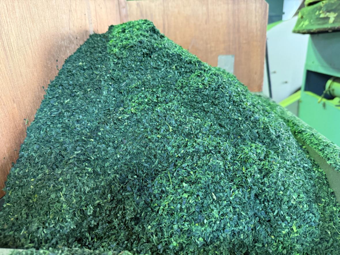 例年は、抹茶の新茶時期は11月の「口切りの茶亊」から始まる茶道の習わしに備え、熟成された茶葉を保蔵庫から9月頃から仕上げ作業を始めるのですが、過去に記憶がない程のご依頼を頂き7月から始めさせて頂いております。