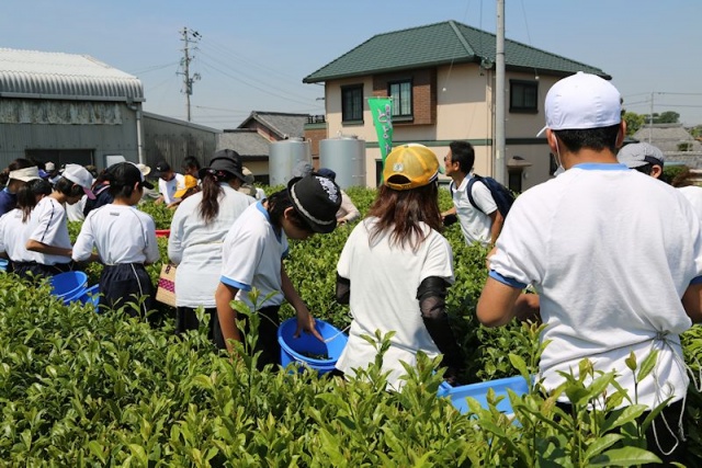 2015年06月04日(木) イベント < ニュース&イベント&掲載情報 中学校のお茶摘み体験 5月27日毎年恒例の中学校のお茶摘み体験を開催いたしました。 今年は1校増えて4校の生徒さんが来て頂けました。 中には3年間参加していただけた生徒さんもいて、摘み方もベテランさんの領域ですね。茶摘み後は、工場見学や冷たいグリンティー等を飲みながら楽しい時間を過ごしました。また来年、お待ちしています!!