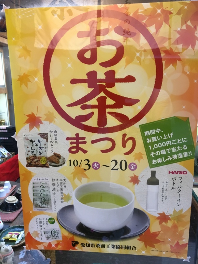 2017年10月02日(月) イベント < ニュース&イベント&掲載情報 お茶祭り!! 10月3日から20日(金)まで碧園お茶の純平本店でお茶祭りを開催します。 1,000円お買い上げ毎でクジが一枚引けます。 今年の目玉は、「お茶が作ったお茶漬け」です!! このお茶漬け、お茶好きには堪らなく美味しいです!! ハズレ無ですので、必ずお茶漬けが貰えます。 ご来店、お待ちしています!!
