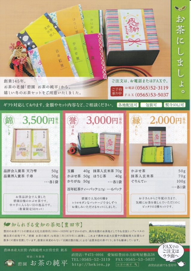 碧園お茶の純平では、茶師が厳選した豊田茶の詰合せをご用意させていただ