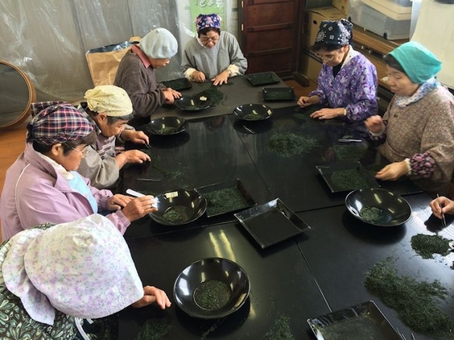 2014年06月27日(金) ニュース < ニュース&イベント&掲載情報 品評会出品茶(かぶせ茶)の仕上げをしました。 品評会に出品するお茶(かぶせ茶)の仕上げ作業をしました。 地域の選り子さん達の熟練の手作業により芸術品の様なお茶になります。 約7キロある元茶を皆さんで、1本1本ピンセットで大切に選別をしていきます。今では機械選別もできますが、碧園では手作業を大切にしていきたいと思います。
