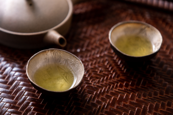 - 最後に、煎茶をカップに注ぎます。茶葉がカップに底に残らないように注意して注ぎます。